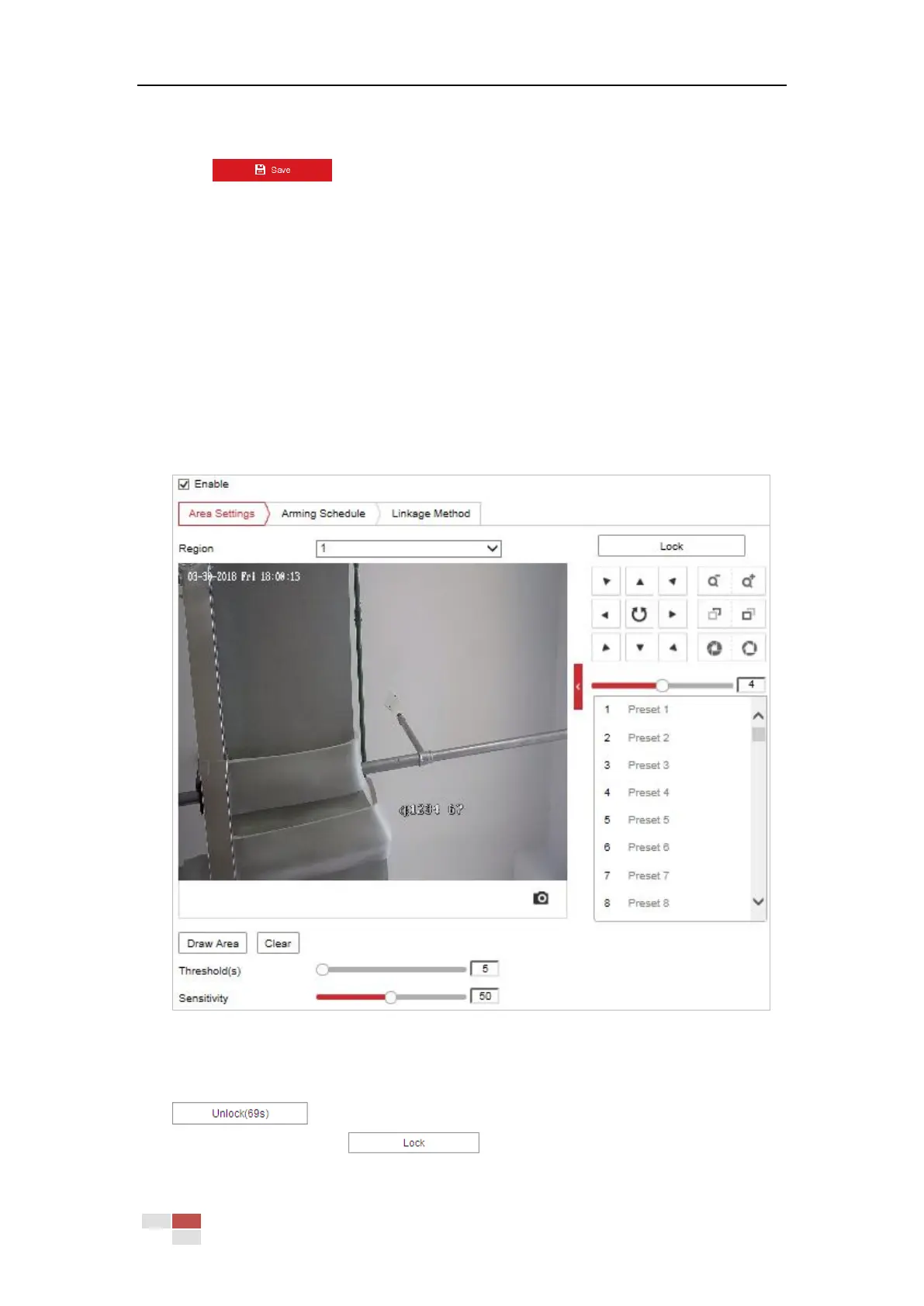 3. The event triggered and park action related PTZ movement will be locked for 180 seconds