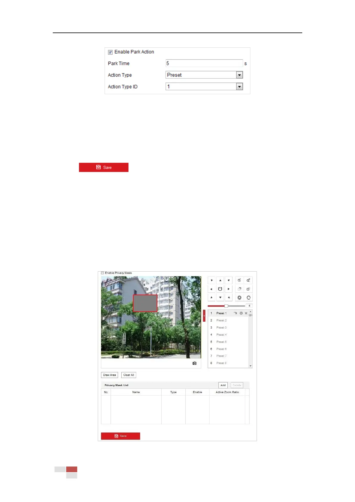 Privacy mask enables you to cover certain areas on the live video to prevent certain spots in the