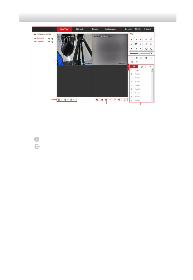 Click each tab to enter Live View, Playback, Picture, and Configuration page