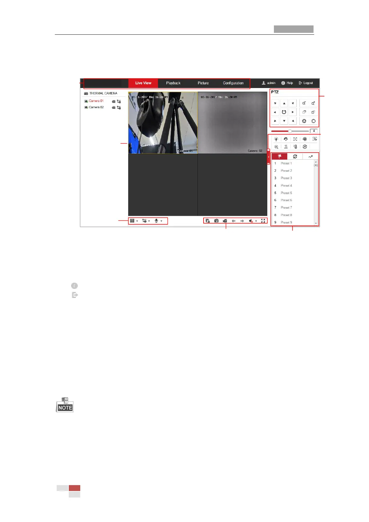 Click each tab to enter Live View, Playback, Picture, and Configuration page respectively.