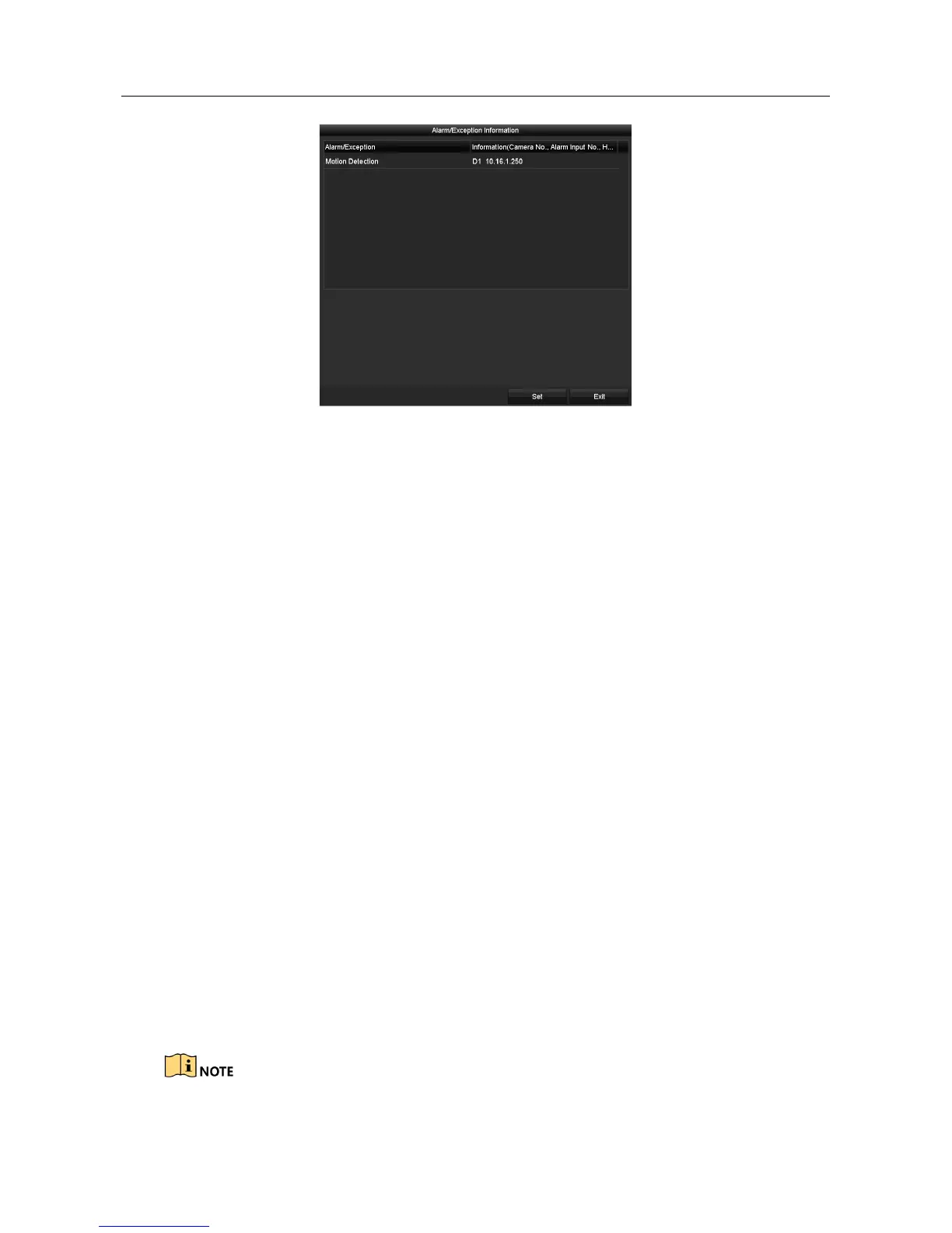 When an alarm is triggered, the local monitor (HDMI, VGA or CVBS monitor) displays in full screen
