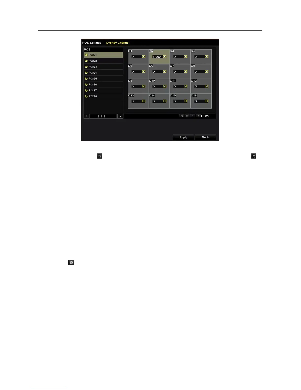 Set the POS alarm parameters to trigger certain channels to start recording, or trigger full screen