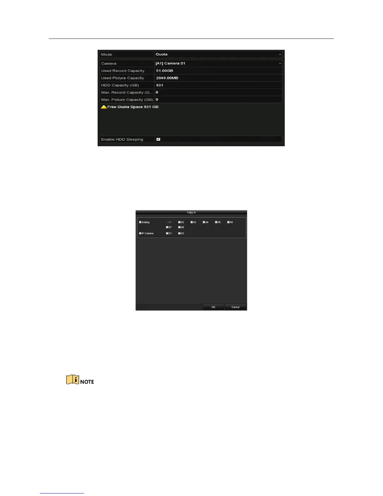 If the quota capacity is set to 0, then all cameras will use the total capacity of HDD for record.