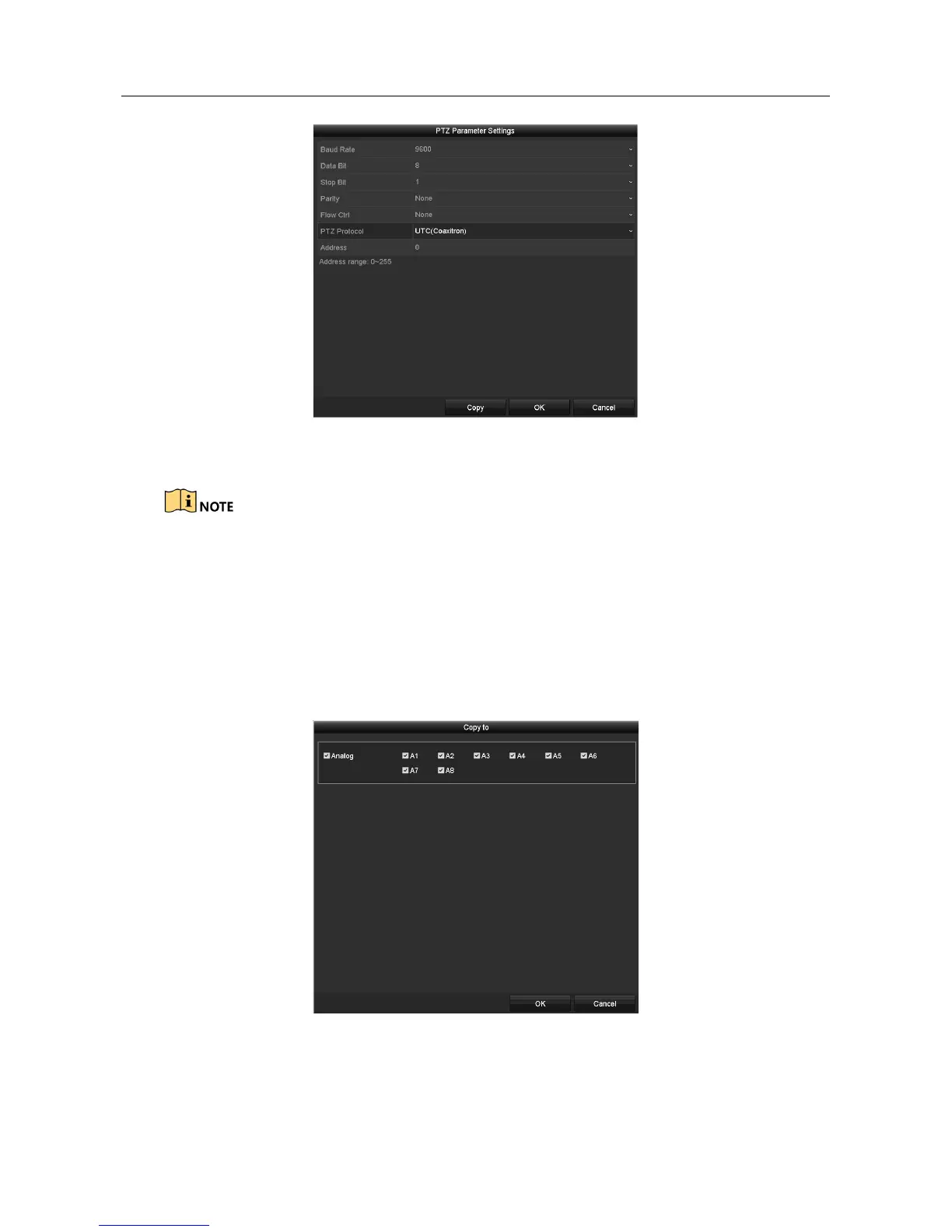you want to copy to and click OK to return to the PTZ Parameters Settings interface.