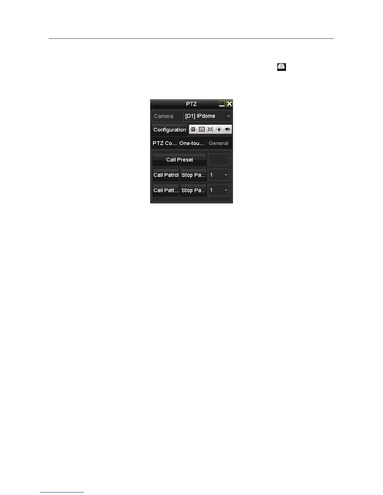 Or press the PTZ button on the front panel or click the PTZ Control icon in the quick