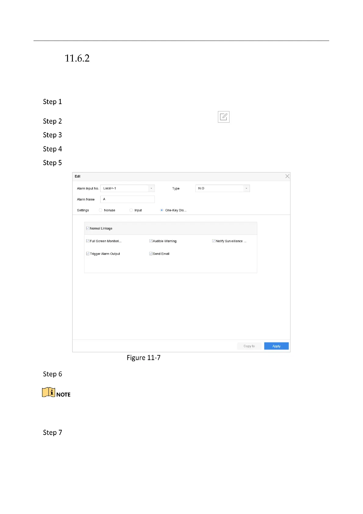 Select the alarm linkage action (s) you want to disarm for the local alarm input1.