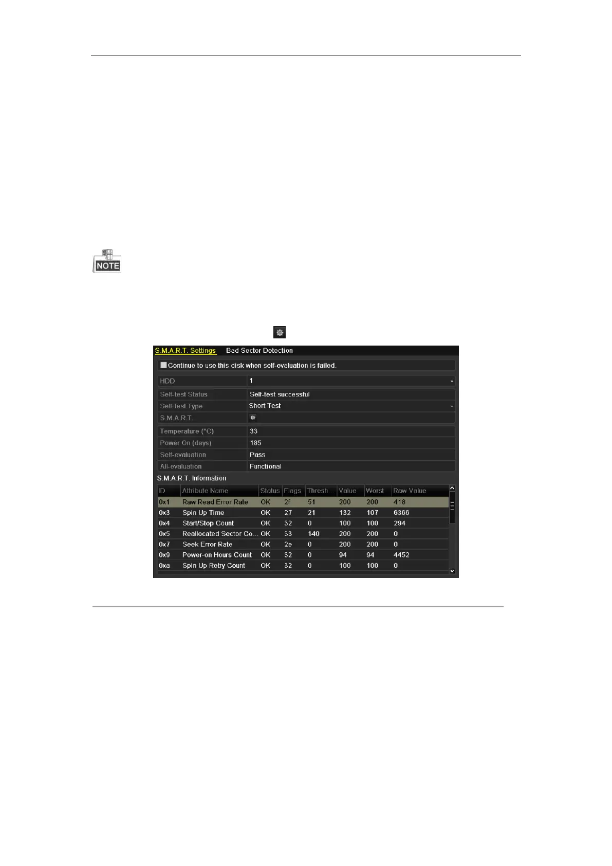 Menu > HDD >HDD Detect >S.M.A.R.T. Settings
