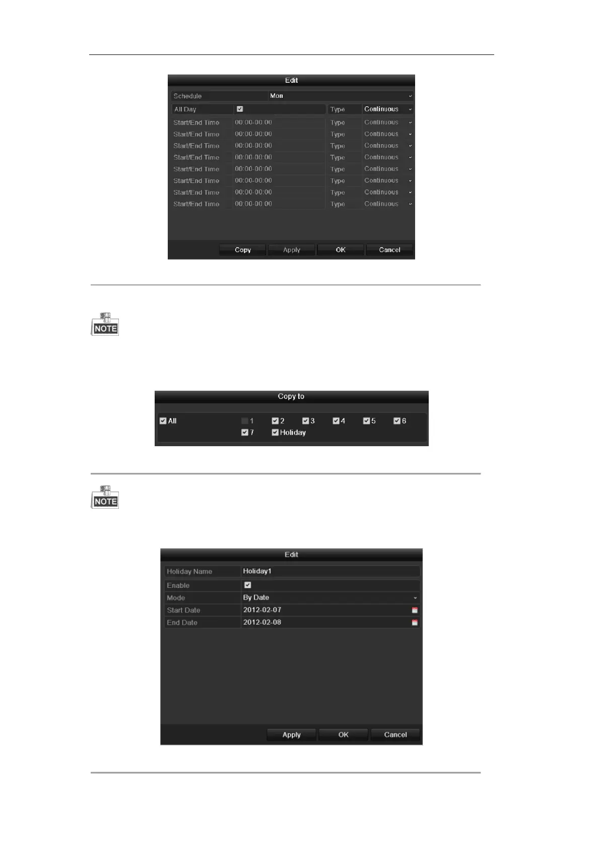 in Holiday Settings. Refer to Chapter 5.5 Configuring Holiday Record.