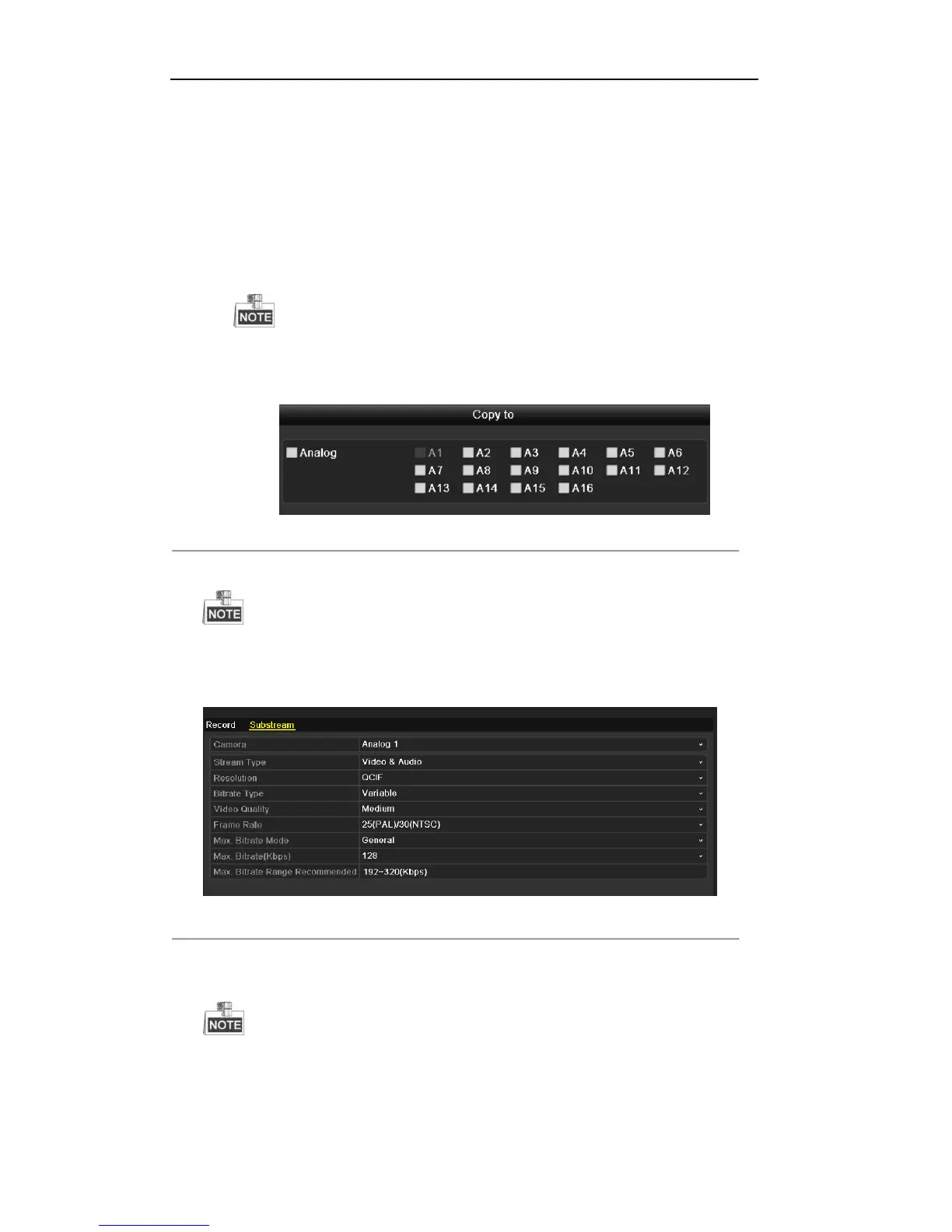 5) If you want to copy the current main stream settings to other camera (s), click Copy to enter the