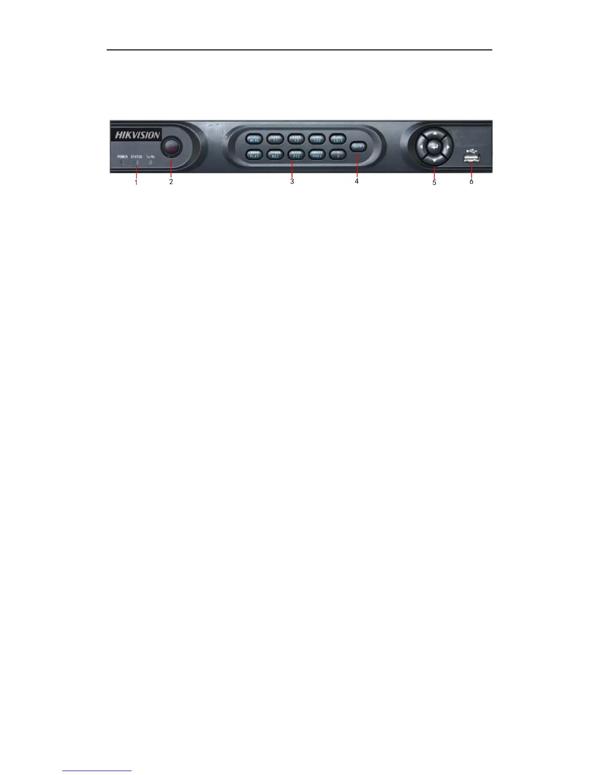 • POWER: the POWER indicator turns green when DVR is powered up.