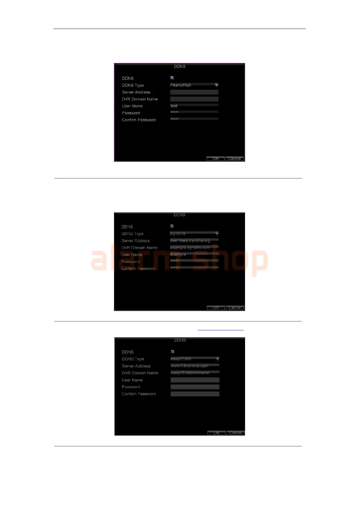 • easyDDNS: Enter default Server Address (www.hik-online.com) and the DVR Domain