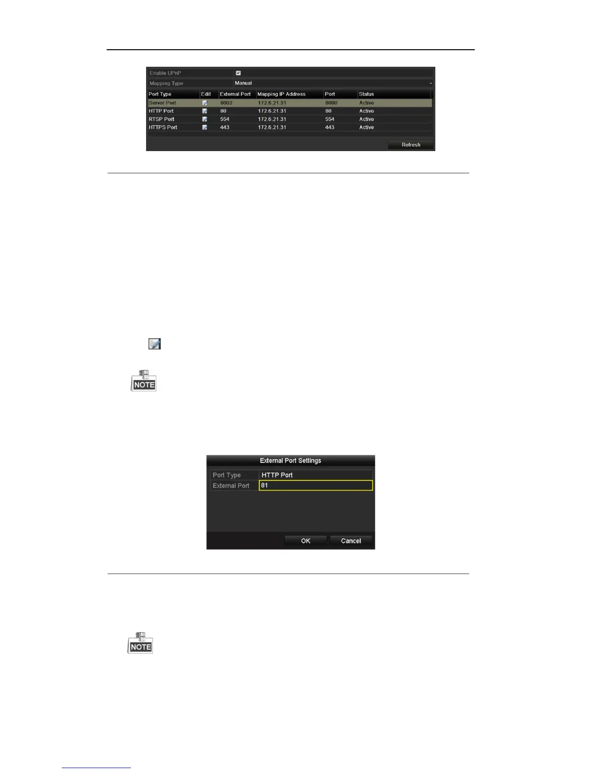 4. Click to activate the External Port Settings dialog box. Configure the external port No. for server