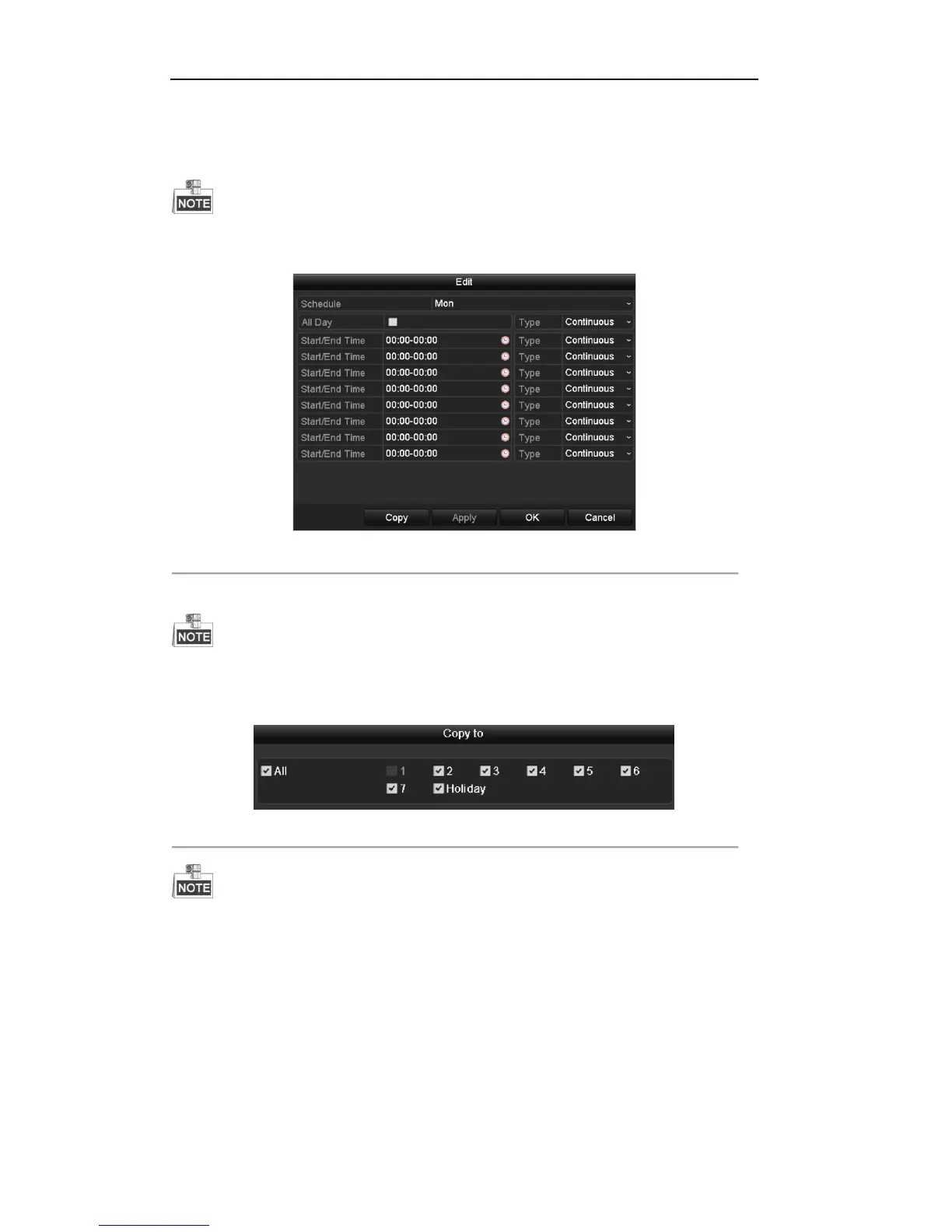 Repeat the above steps2)-5) to schedule recording for other days in the week. If the schedule can also be set to