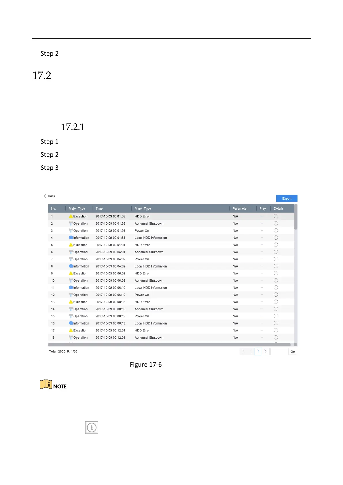 The operation, alarm, exception and information of the device can be stored in log files, which can