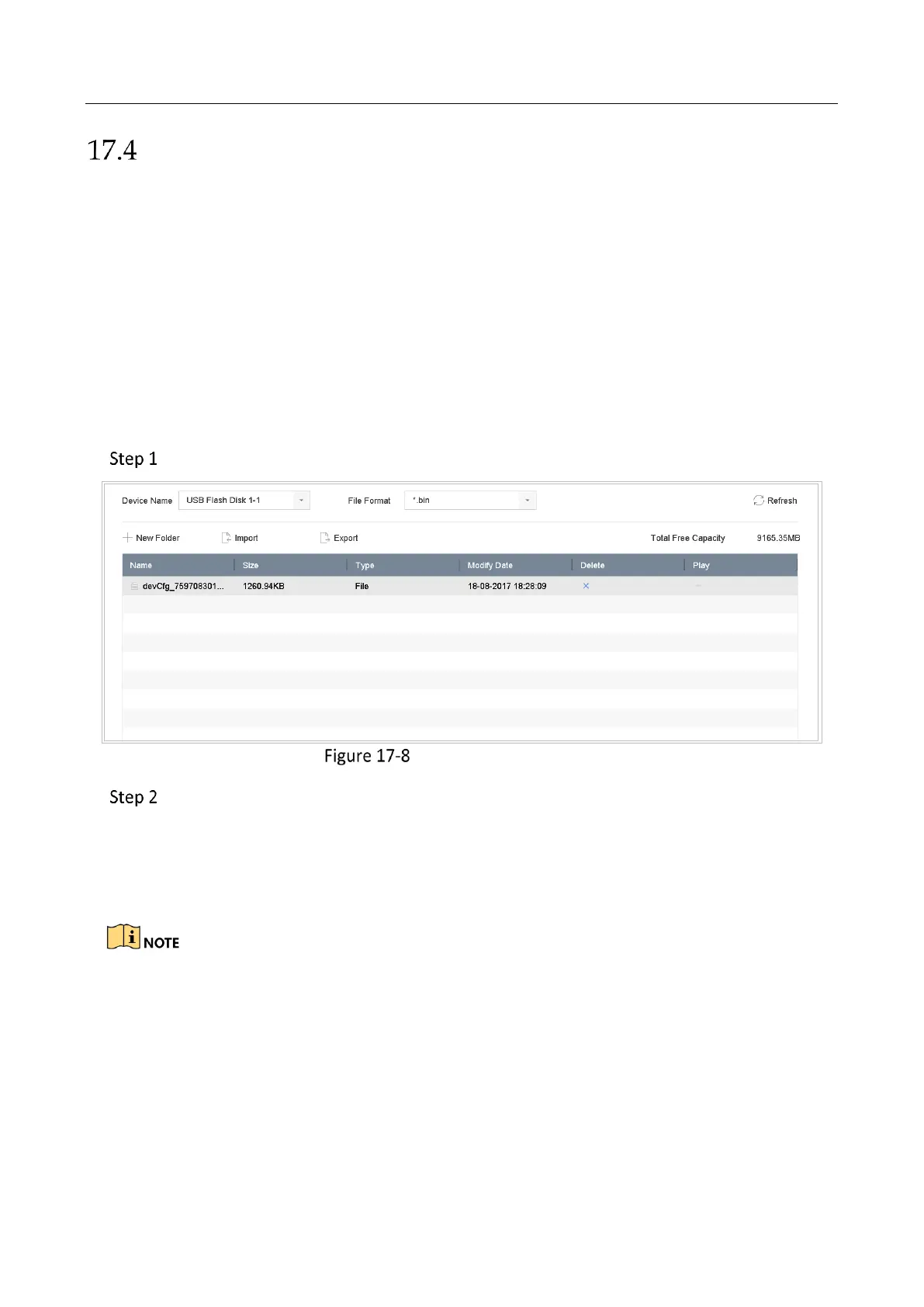 Connect a storage device to your device. For importing the configuration file, the storage device