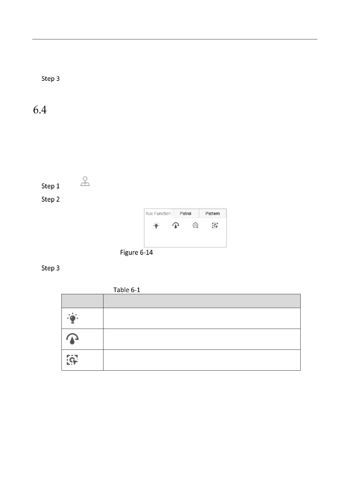 Click the icons to operate the aux functions. See the table for the description of the