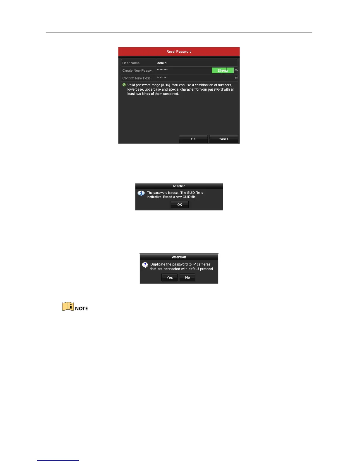 3) Click OK to save the new password. Then the Attention box pops up as shown below.