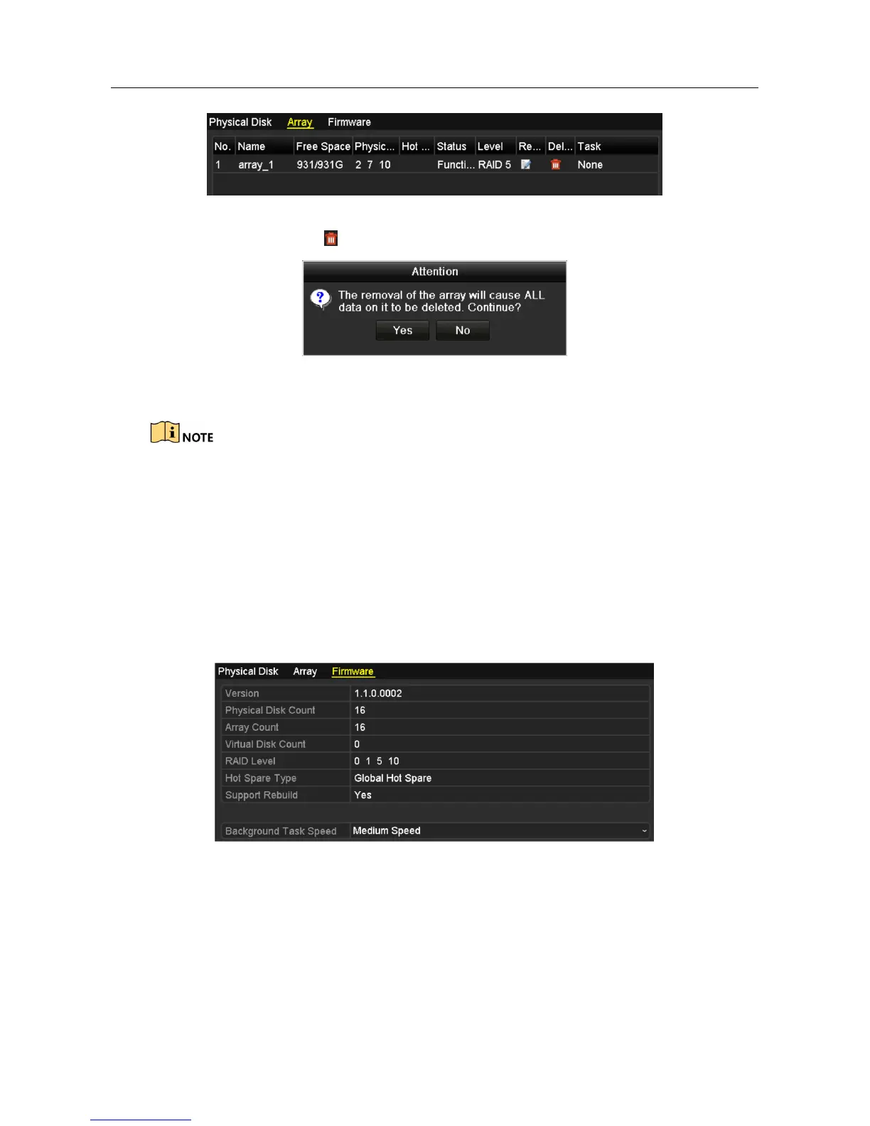 Step 3 In the pop-up message box, click Yes button to confirm the array deletion.