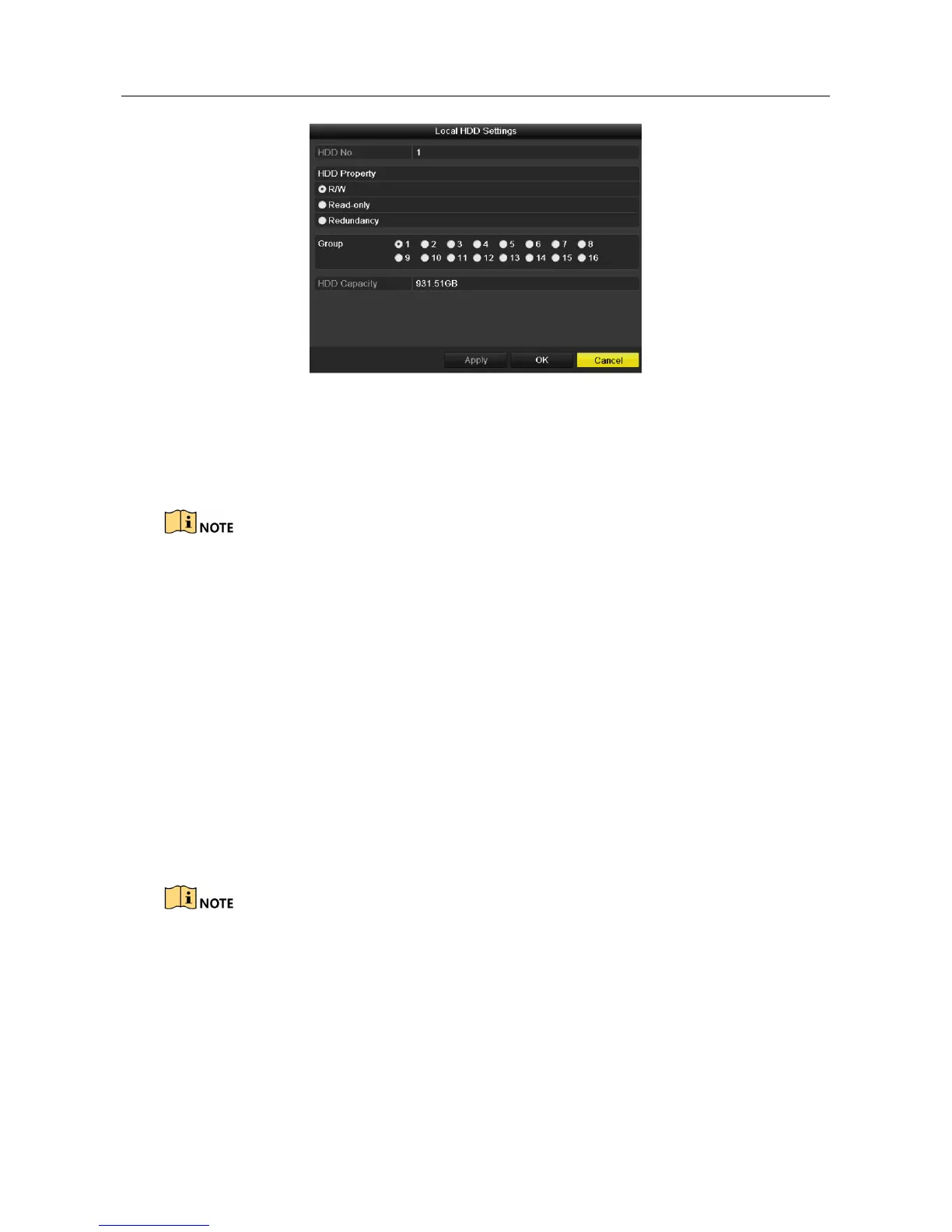 Step 3 Set the HDD property to R/W, Read-only or Redundancy.