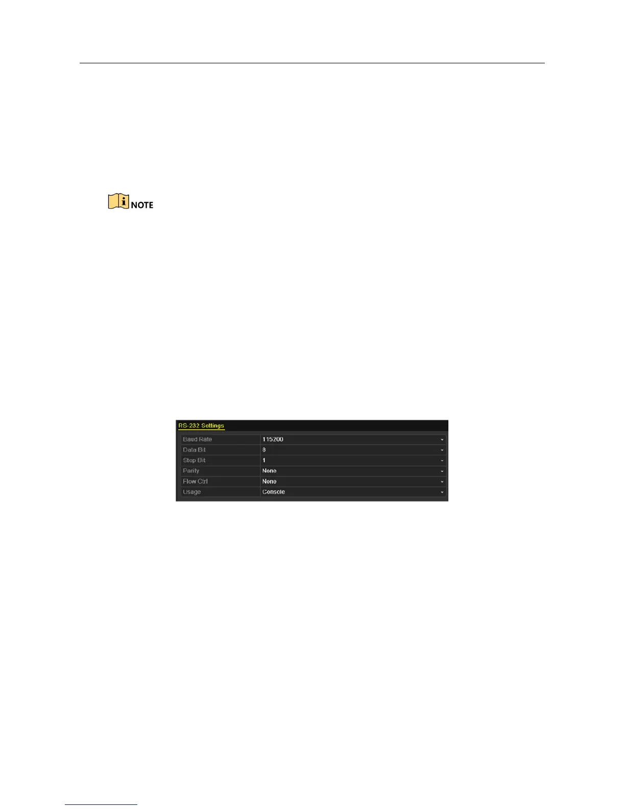 Step 2 Configure RS-232 parameters, including baud rate, data bit, stop bit, parity, flow control
