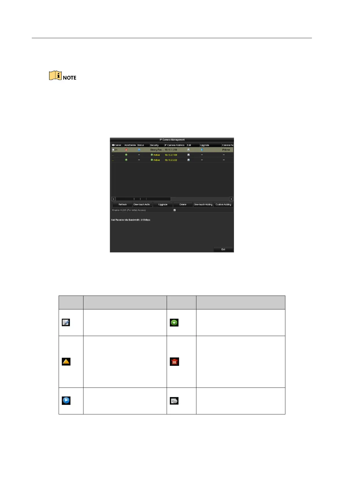 For the successfully added IP cameras, the Security status shows the security level of the