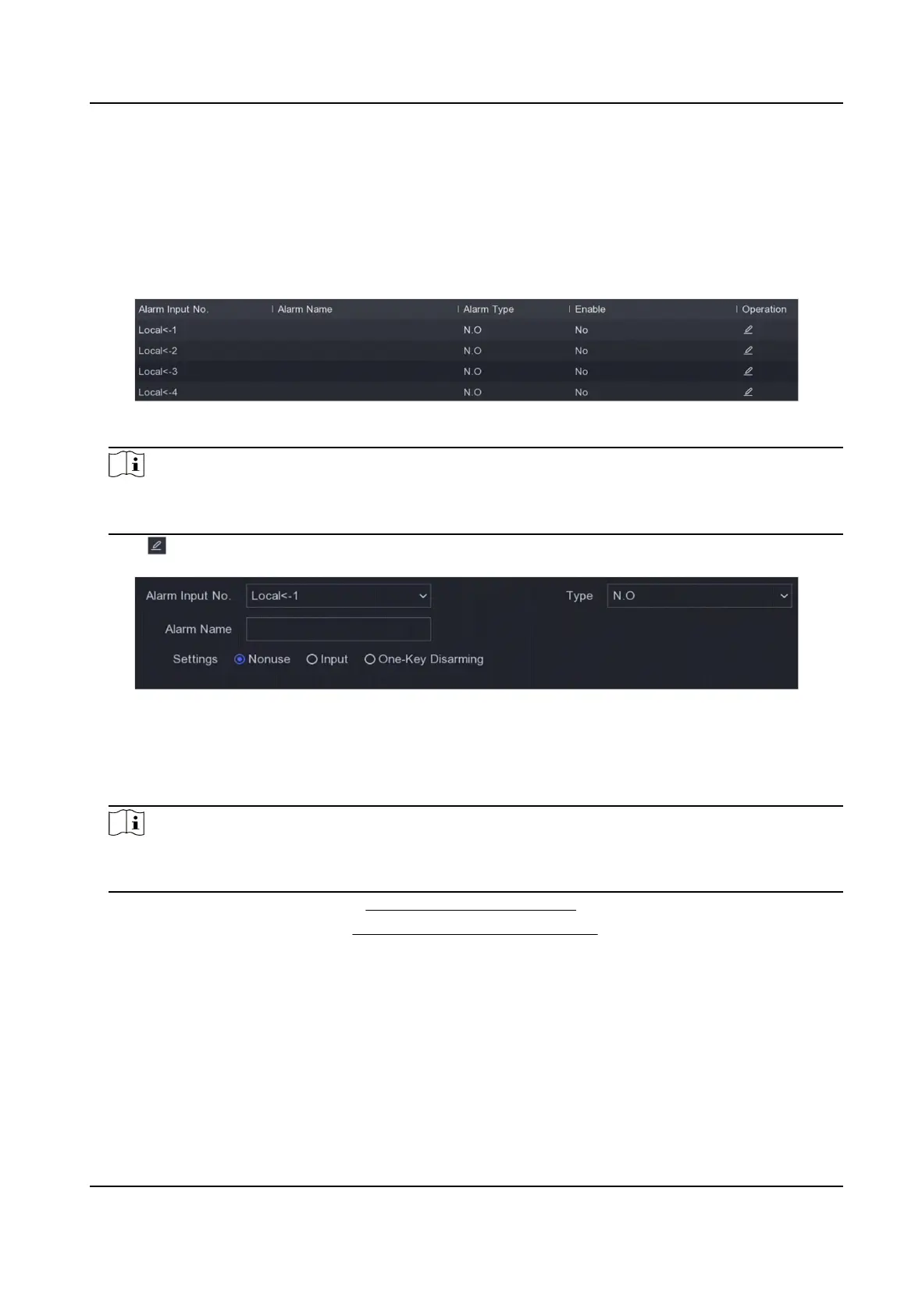 Set alarm type as N.O (normally open) or N.C (normally closed).