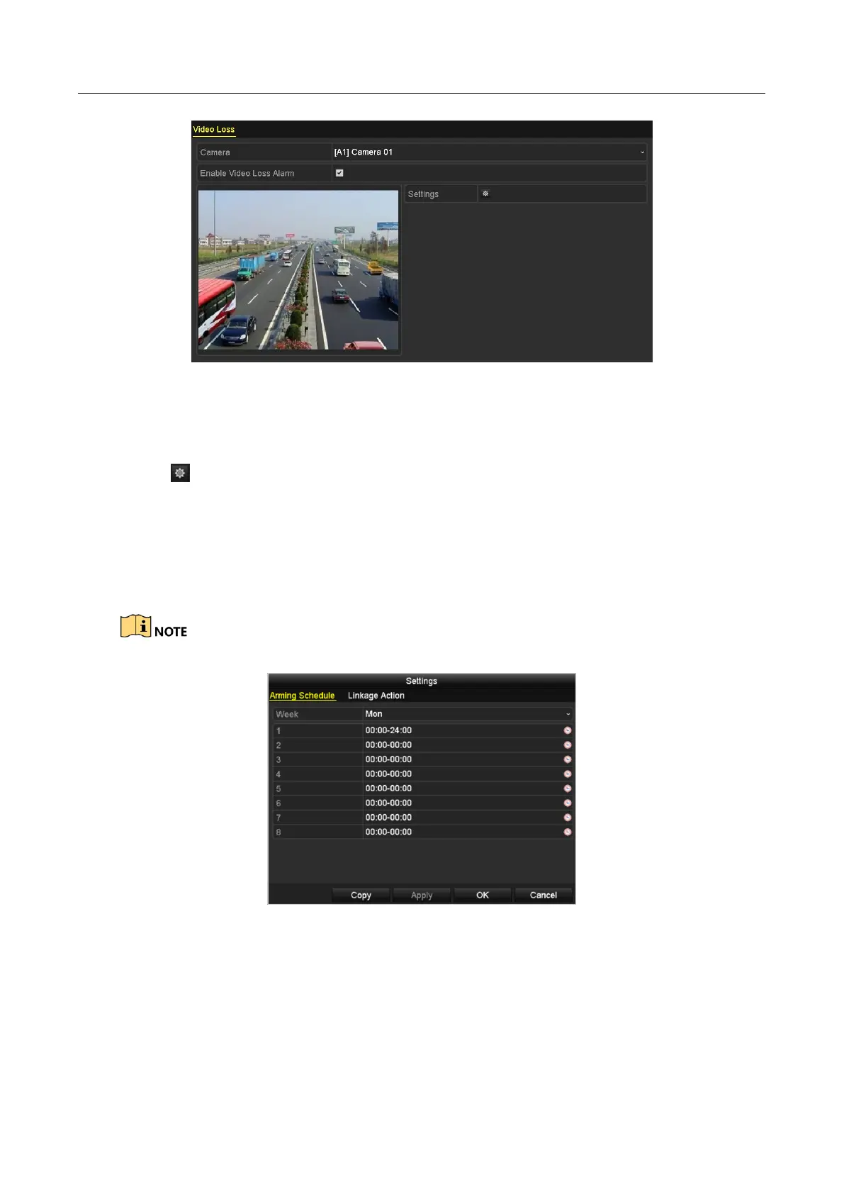 Step 4 Select Linkage Action tab to set up alarm response action of video loss (please refer to