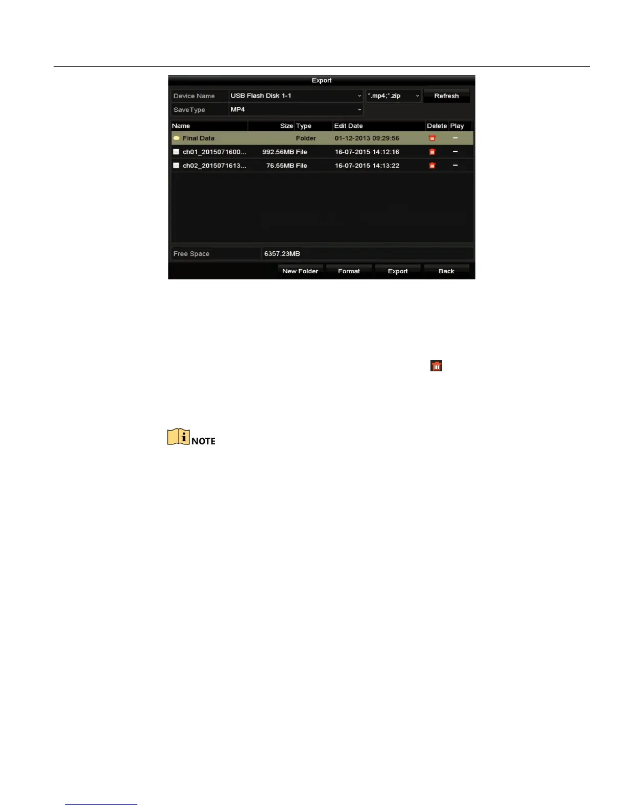 2) Select a record file or folder in the backup device and click if you want to delete it.