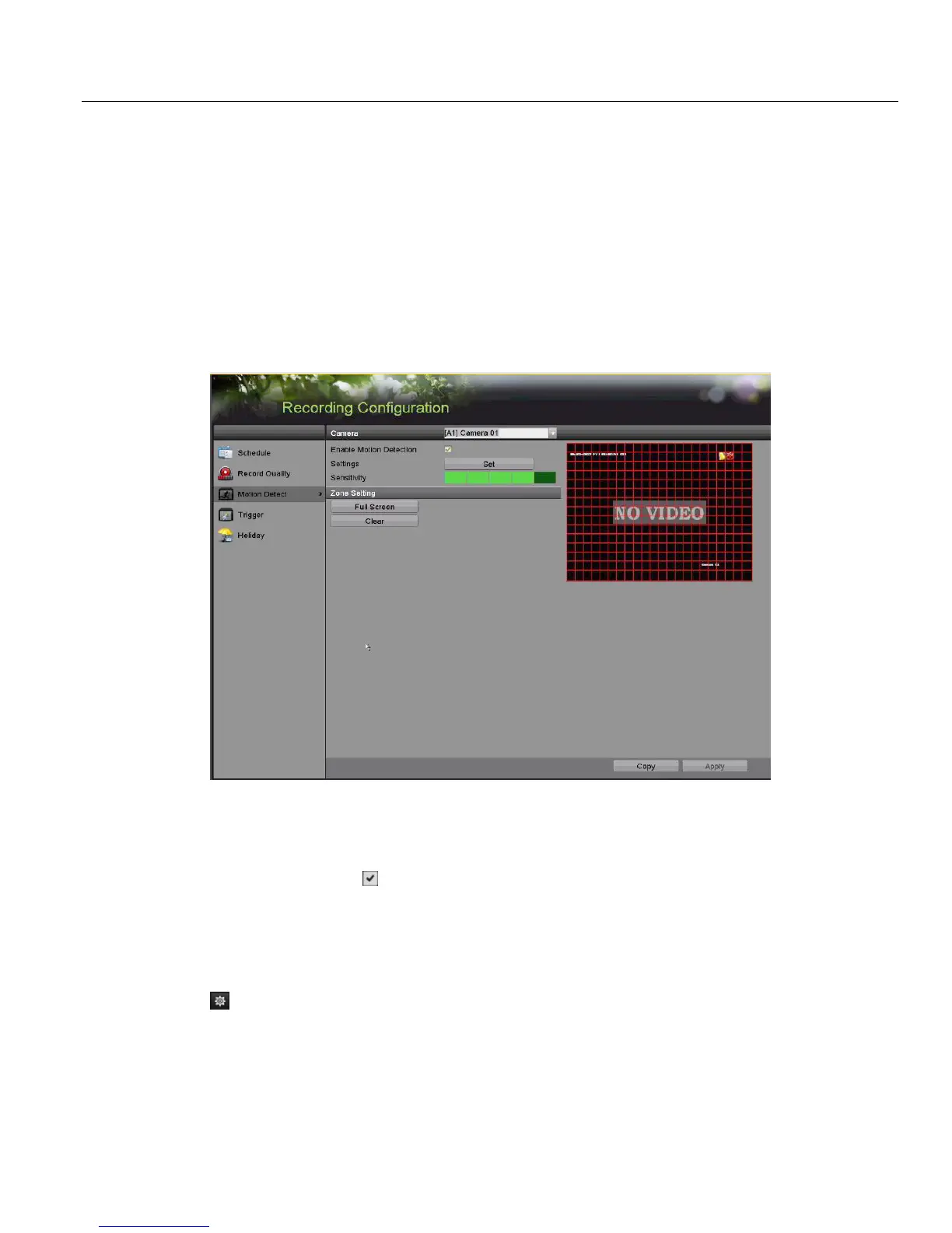 4. Check the motion detection checkbox to enable it.