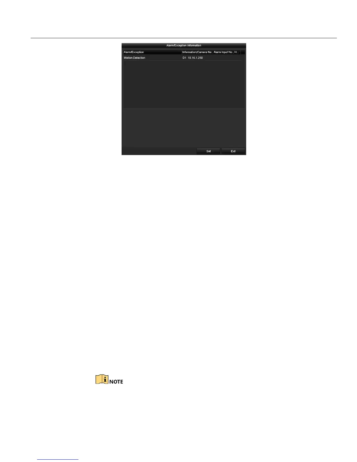 When an alarm is triggered, the local monitor (HDMI, VGA, or CVBS monitor) displays in full screen the