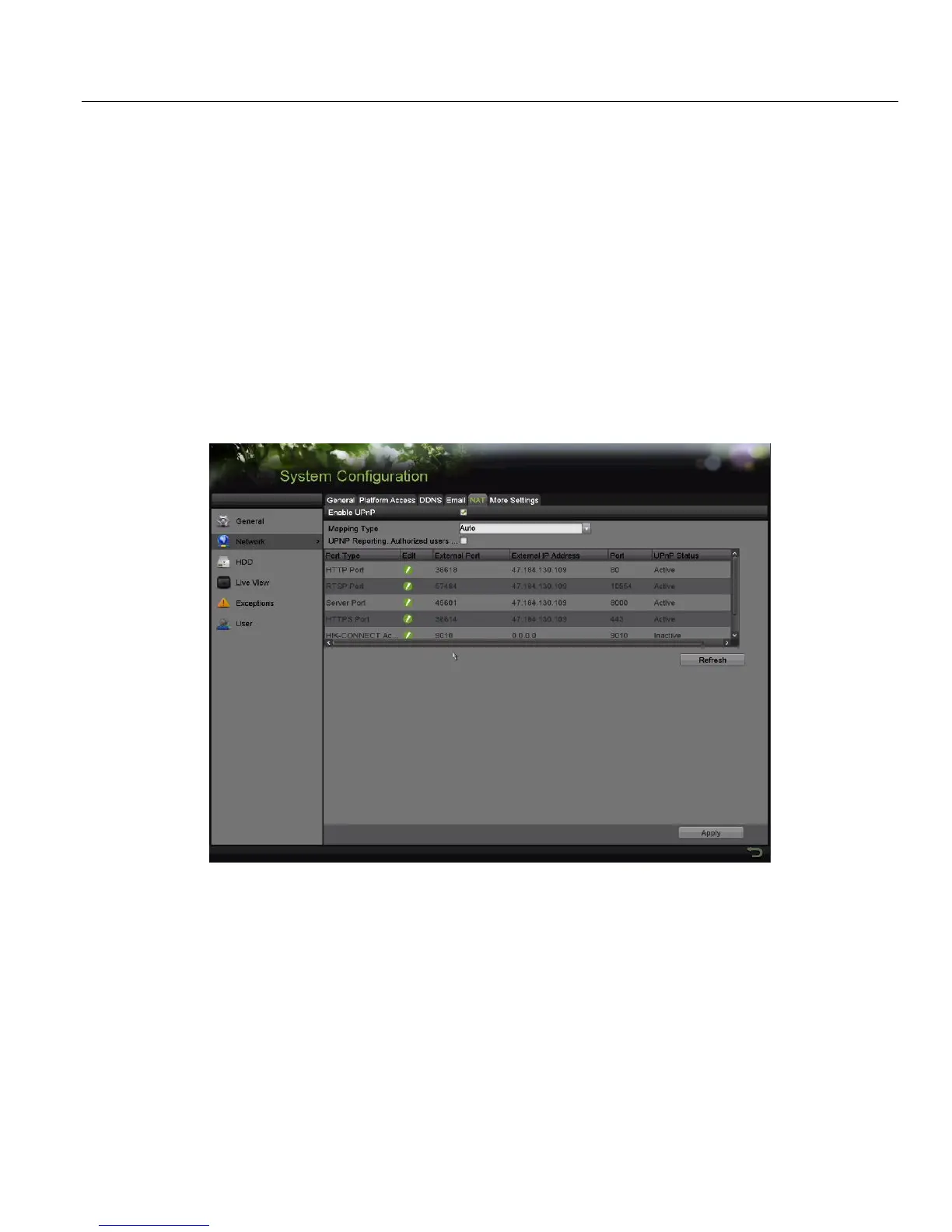 If you select Auto, the Port Mapping items are read-only, and the external ports are set by