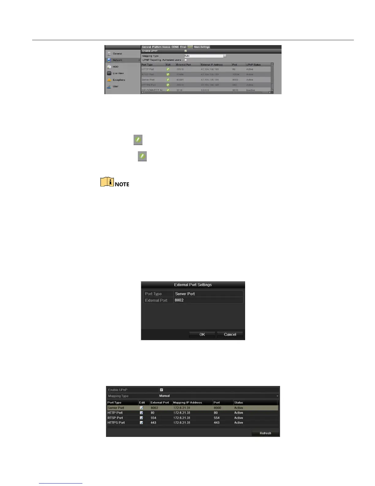 1) Click to activate the External Port Settings dialog box. Configure the external