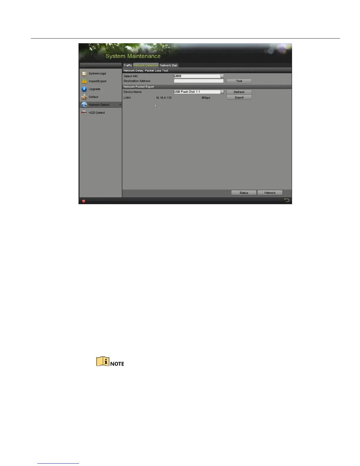1. Enter the Network Traffic interface, Menu > Maintenance > Net Detect.
