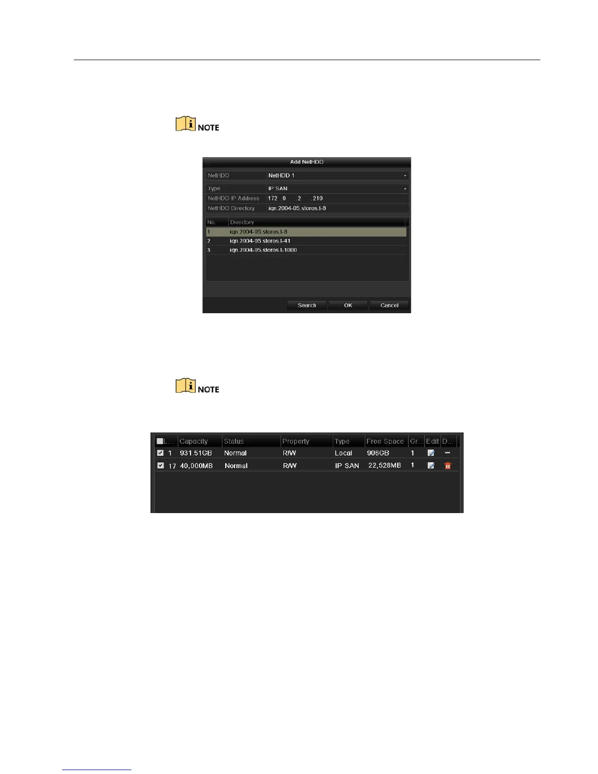 6. After having successfully added the NAS or IP SAN disk, return to the HDD Information menu. The