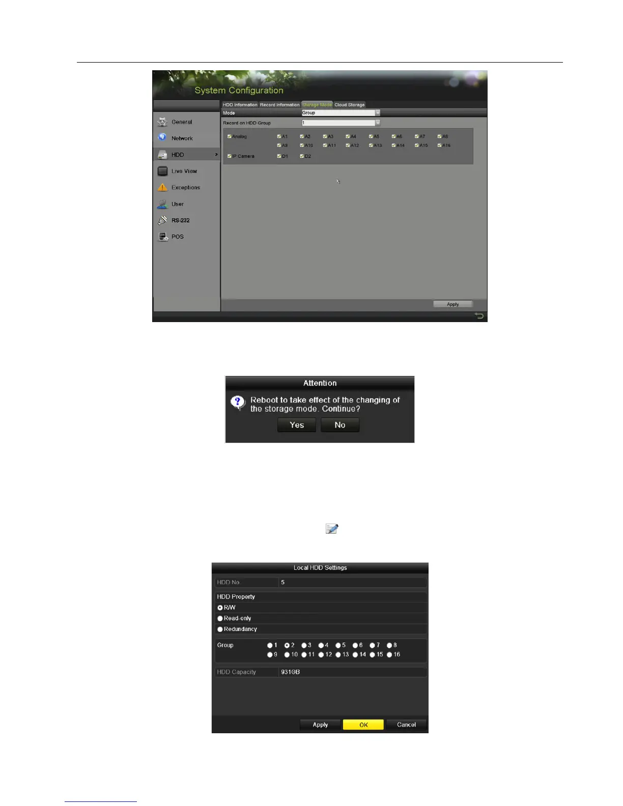 5. After device reboot, enter the HDD Information interface, Menu > HDD > General.