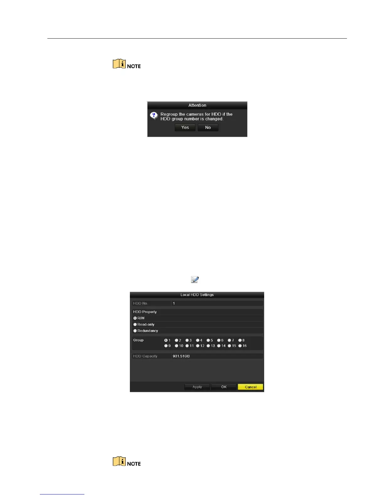 property, set the storage mode to Group (see steps 1 – 4 of Chapter 12.3.1 Setting HDD Groups).