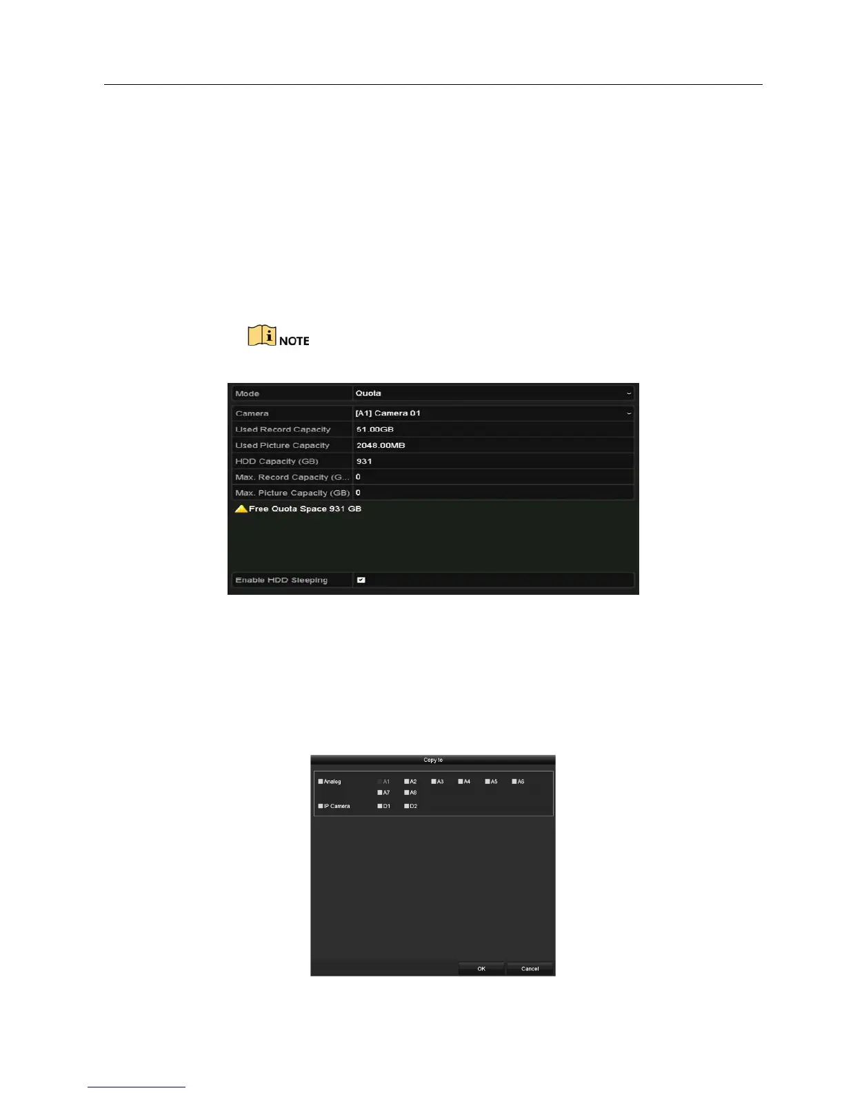 6. Copy the current camera’s quota settings to other cameras if desired. Click Copy to enter the Copy
