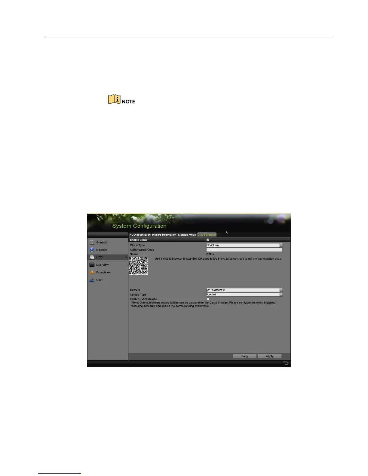 1. Enter the Cloud Storage interface, Menu > HDD > General > Cloud Storage.