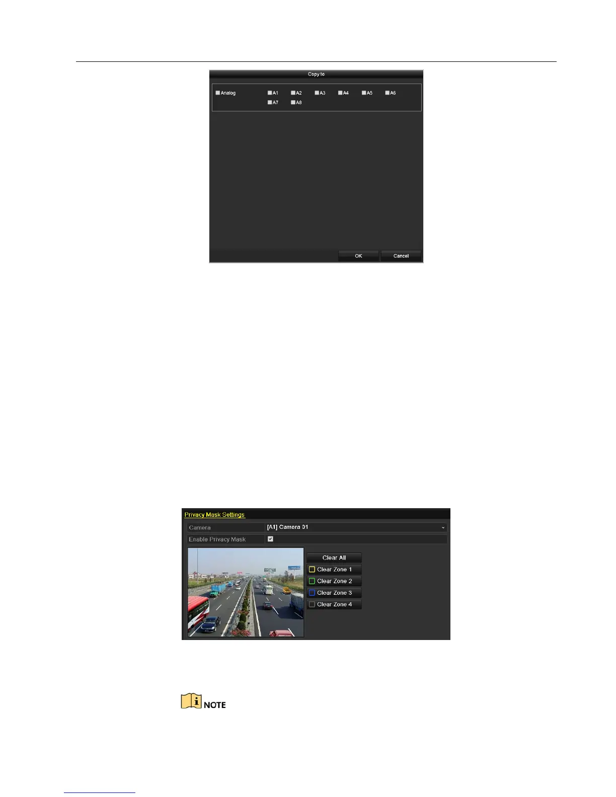 1. Enter the Privacy Mask Settings interface, Menu > Cameras Setup > Privacy Mask.