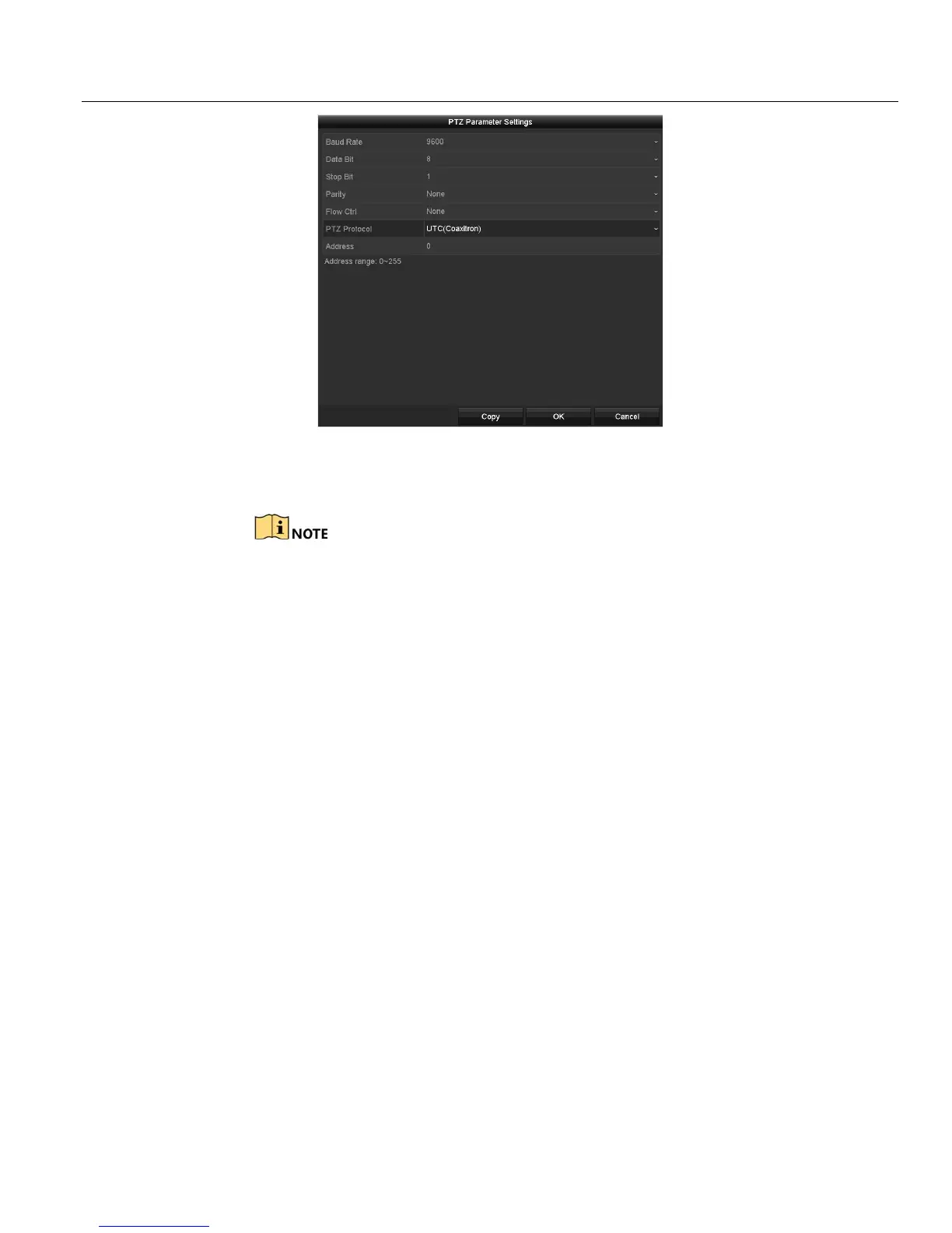 For an Up-the-Coax camera/dome, select the UTC PTZ protocol.