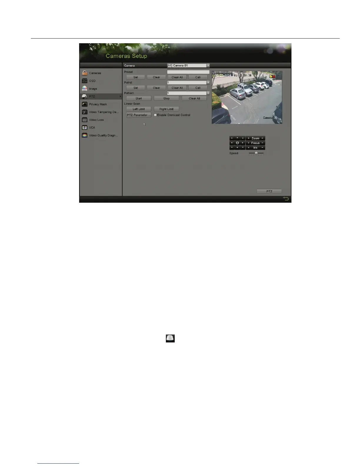 llow the procedure to move the PTZ camera according to the predefined patterns.