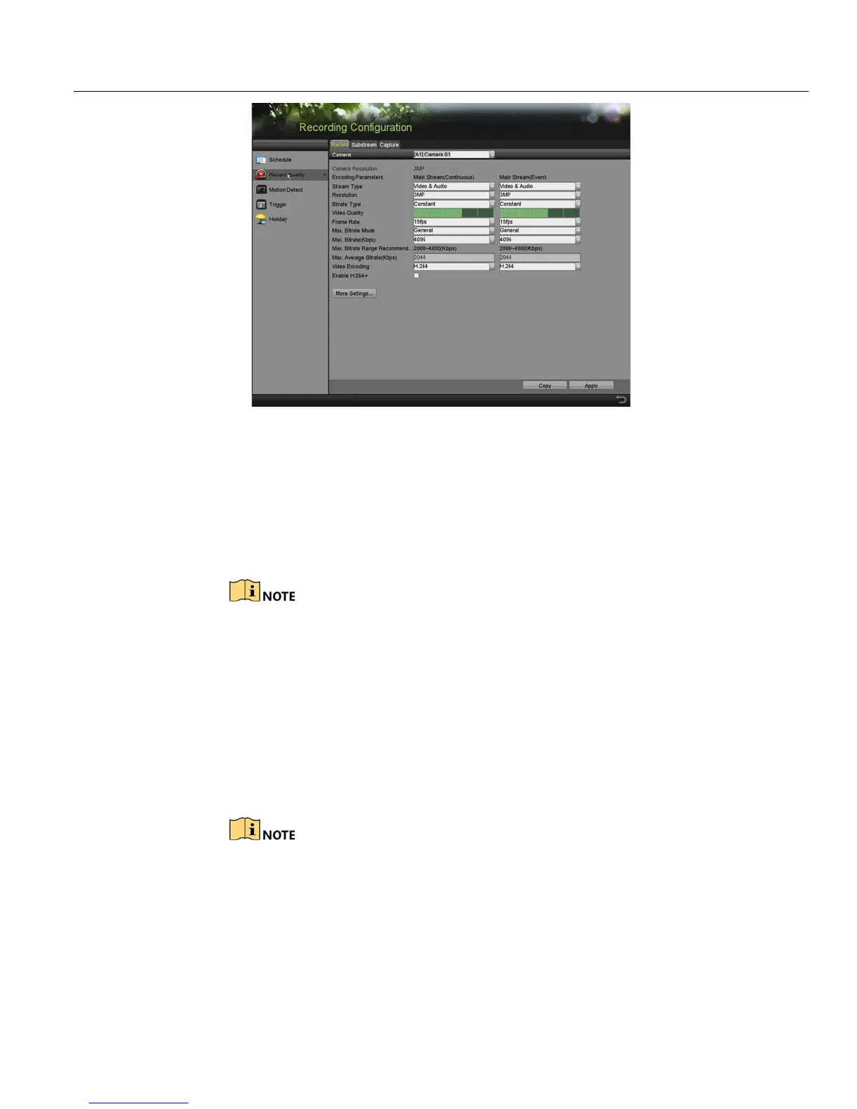 4) Configure the following parameters for the Main Stream (Continuous) and the Main Stream