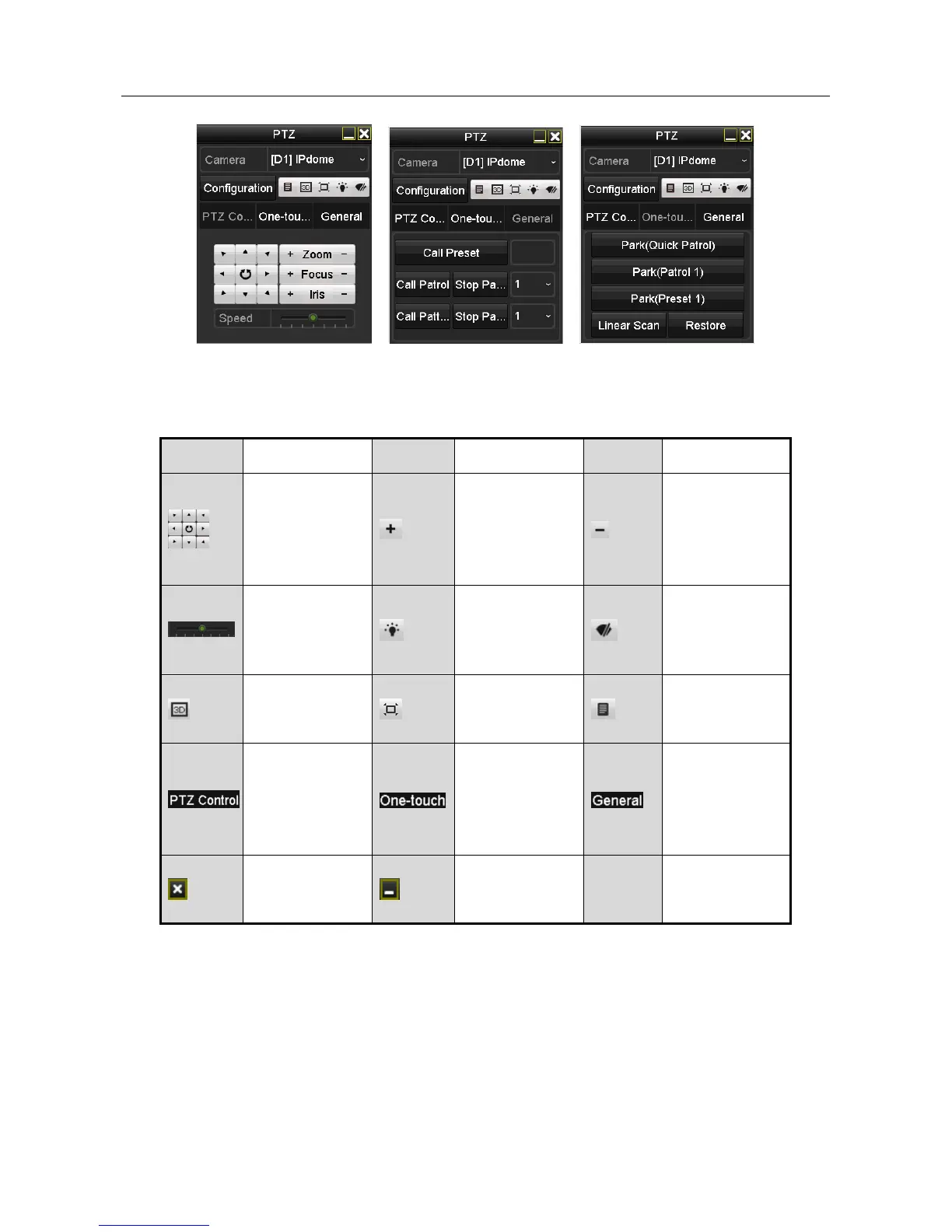 You can refer to Table 4-1 for the description of the PTZ panel icons.