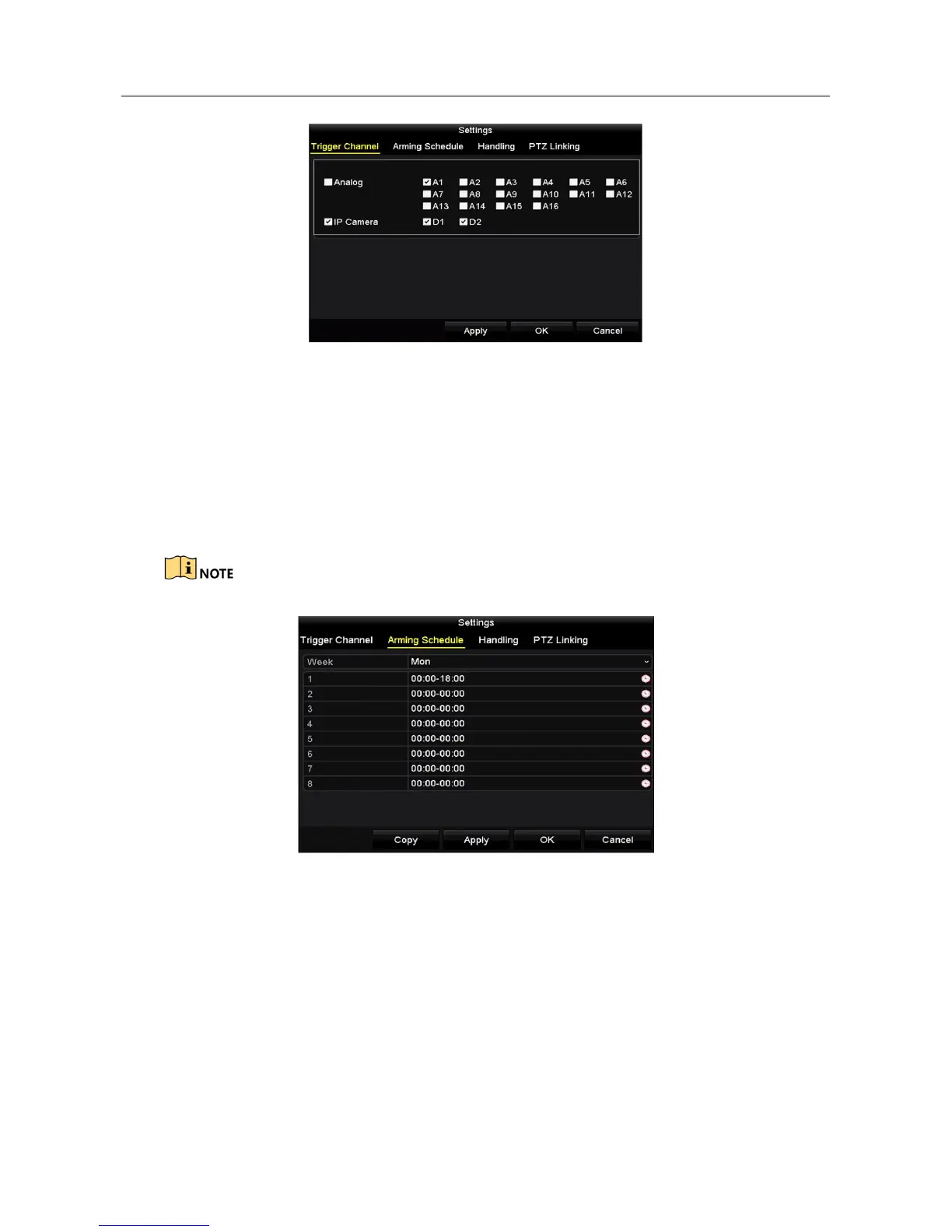 Select Arming Schedule tab to set the channel’s arming schedule.