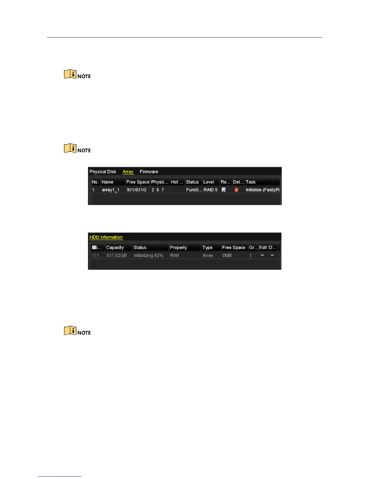 Step 5 When the array configuration is completed, click OK button in the pop-up message box to