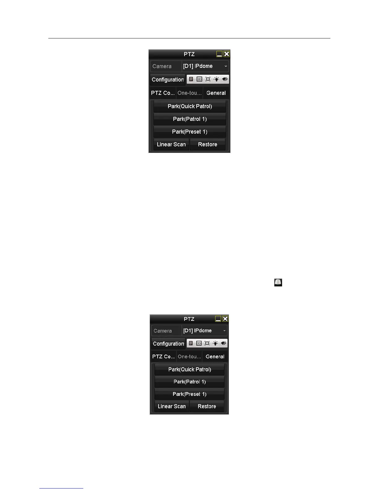 Or press the PTZ button on the front panel or click the PTZ Control icon in the quick