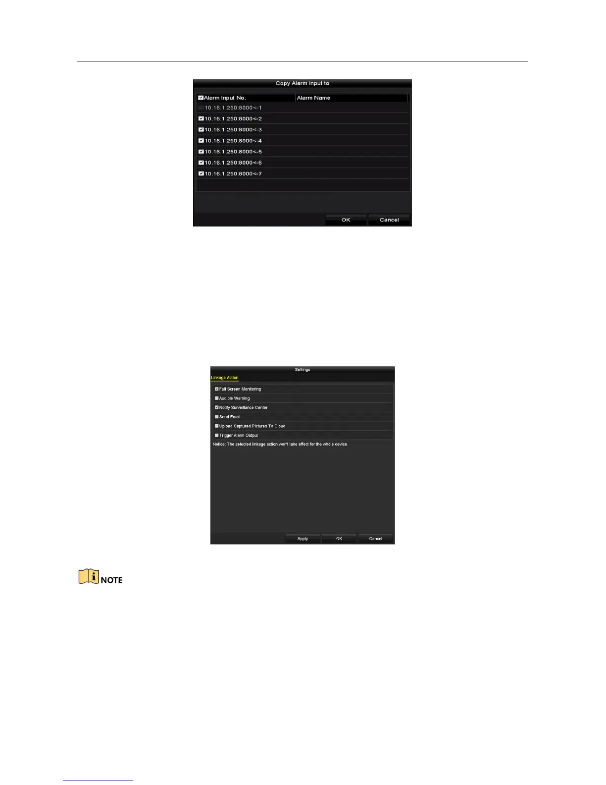 3) Select the alarm linkage action (s) you want to disarm for the local alarm input 1. The
