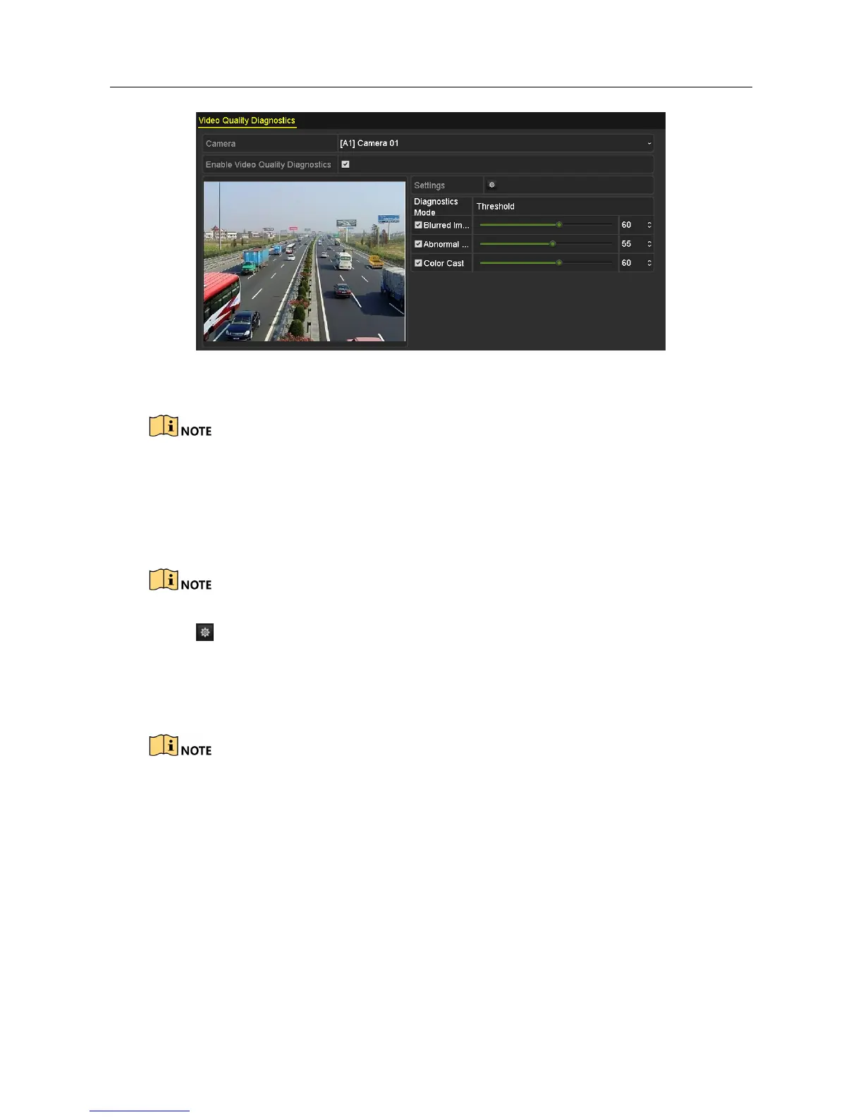 To enable video quality diagnostics, the function should be supported by the selected camera.
