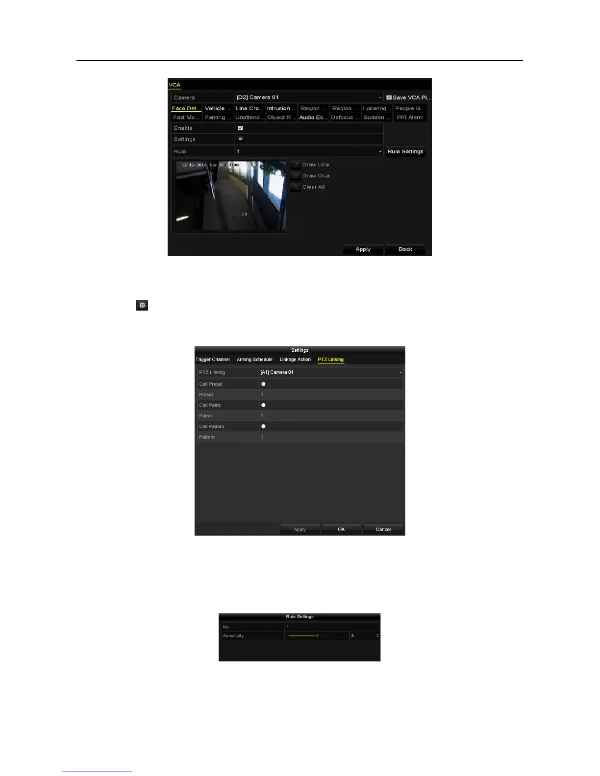 arming schedule, linkage action and PTZ linking for the face detection alarm. Please refer to