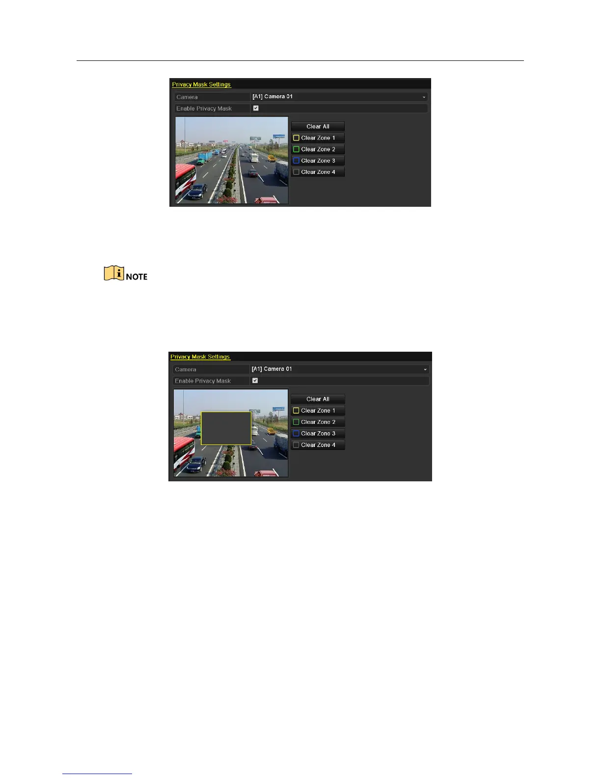 Step 5 The configured privacy mask zones on the window can be cleared by clicking the